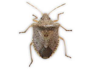 Stink bugs are described in several different ways. They are characterized as both “large, oval-shaped insects” and “shield-shaped insects.” Adult stink bugs can reach almost 2 cm in length. They are nearly as wide as they are long. Their legs extend from the sides, so this makes the adult bugs appear even larger. The brown marmorated stink bug is a brownish stink bug. It has lighter bands on the antennae and darker bands on the wings.